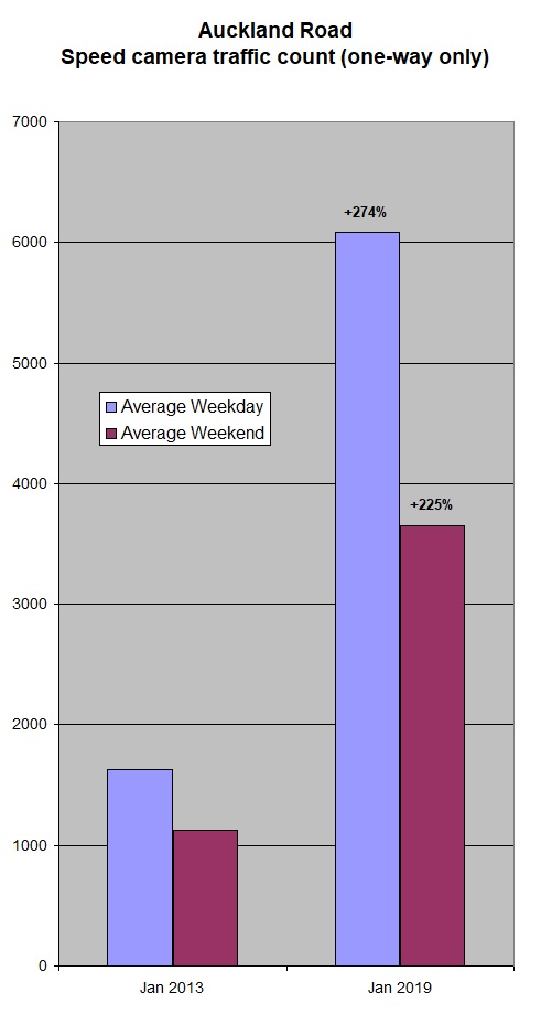 Then when we found that data from the speed device on Auckland Road showed that traffic had increased 3.7 times over the six years from 2013 to 2019, we thought we had the complete deck of cards.