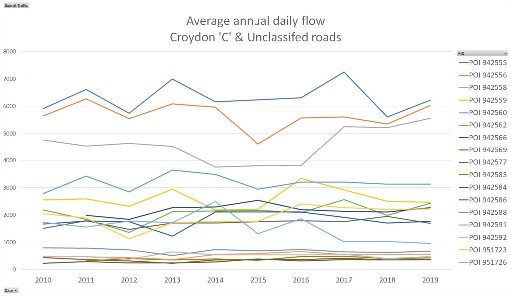 Open Our Roads managed to derive an average of the 17 routes above to produce what they claim is an Average Traffic on ‘C’ and Unclassified Roads in Croydon. They went on to claim: “In fact, official DfT statistics for one of the roads [Stambourne Way] in the LTN show no increase over the last decade. This is a trend mirrored across all C and unclassified roads in the Borough of Croydon that were monitored by DfT over the last decade and thus there is no evidence of any traffic increase within the LTN during this time.”