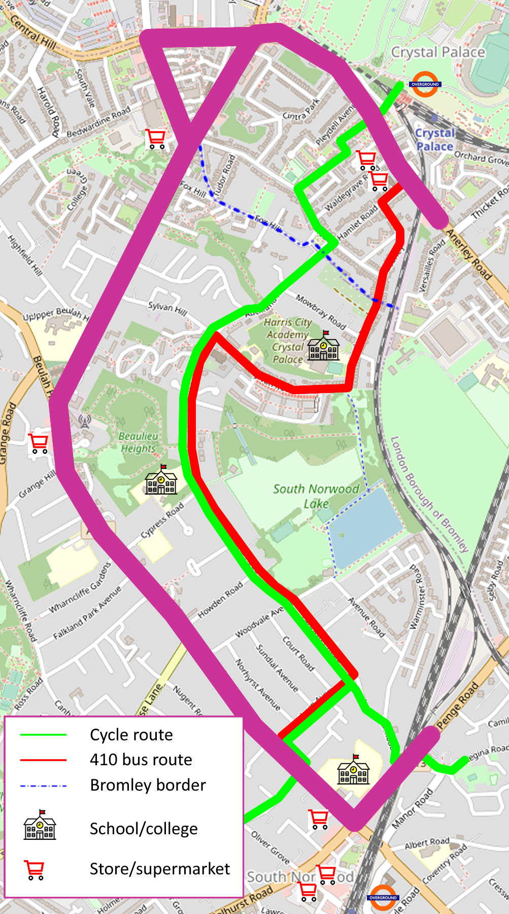 • Congestion seen frequently in the LTN before implementation, in Hamlet Road, round the Auckland Road/Cypress Road junction at the beginning and end of the school day, and on Southern Avenue and Lancaster Road has been eliminated. Delays to the 410 bus have reduced.