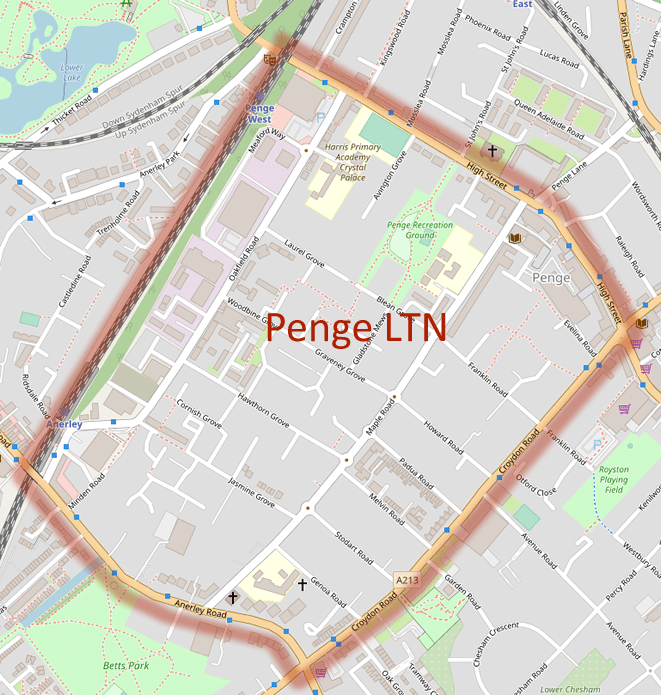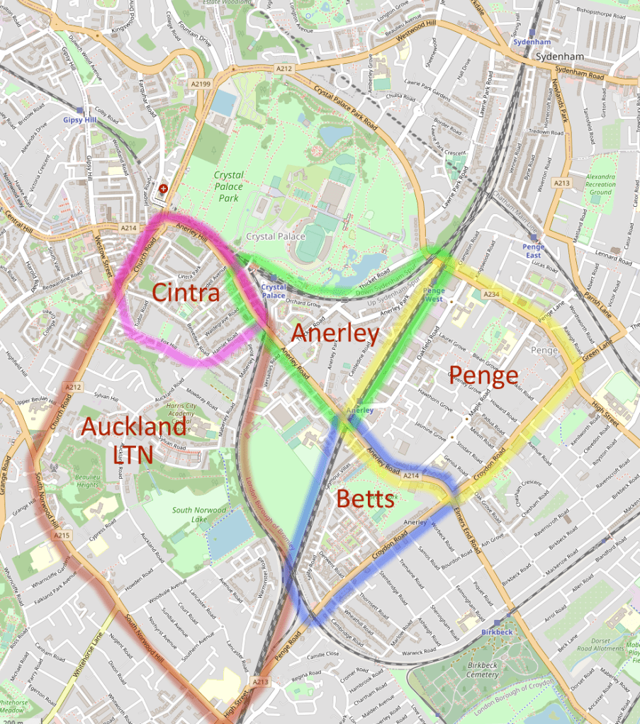 Cintra and Anerley Park are just two potential LTNs that border Croydon streets. There is a problem of rat-running traffic between the main roads running SE/NW (Penge High Street and Anerley Road) and Croydon Road. Residents in Selby Road, for example, have been campaigning for restrictive traffic measures for several years. Here are just two more possible LTNs: