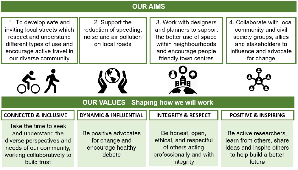 We are a group of local residents volunteering our time to campaign for a safe, quiet and non-polluted environment for our neighbours and safe roads for the increased number of walkers and cyclists who are using Auckland Road.