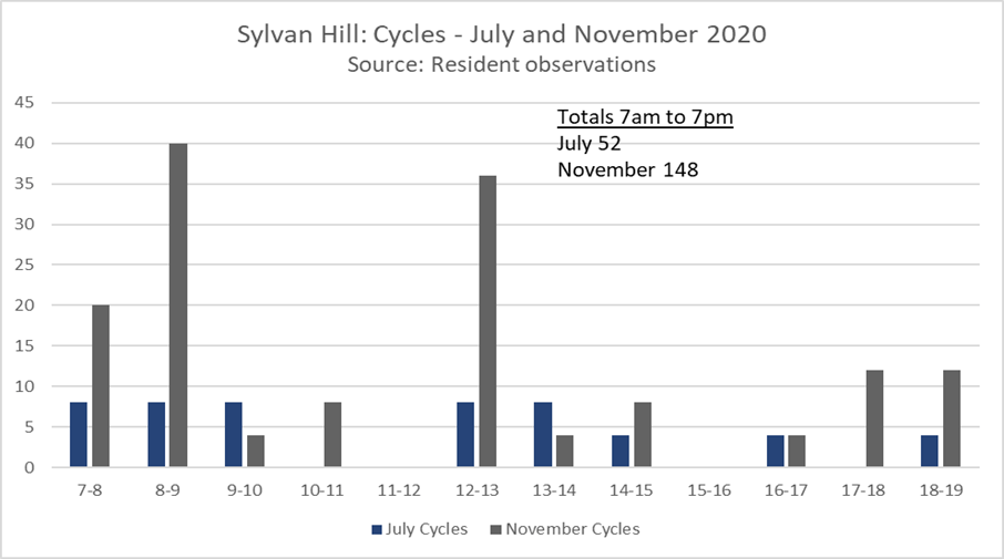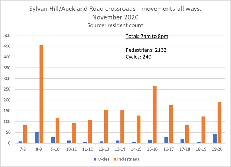 - At the morning peak, traffic levels are comparable, though somewhat lower, than those observed in Auckland Road and Sylvan Hill before the Croydon LTN was implemented. At other times, however, they are around 25 % or less of those observed in the Croydon streets.[xlvii]