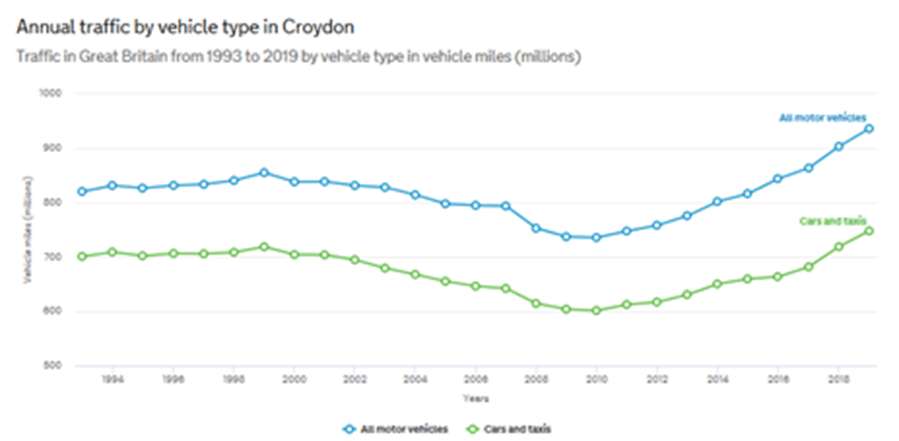 In June 2019 Croydon Council declared a climate emergency, with an ambitious target of ensuring the borough is carbon neutral by 2030.[xx] It has set up a Climate Crisis Commission, one of whose workstreams is on transport and energy.[xxi] A Citizen’s Assembly sponsored by the council and operating in early 2020 said “we want to see fewer cars in total on the borough’s roads with shorter journeys in particular being cut.”[xxii]